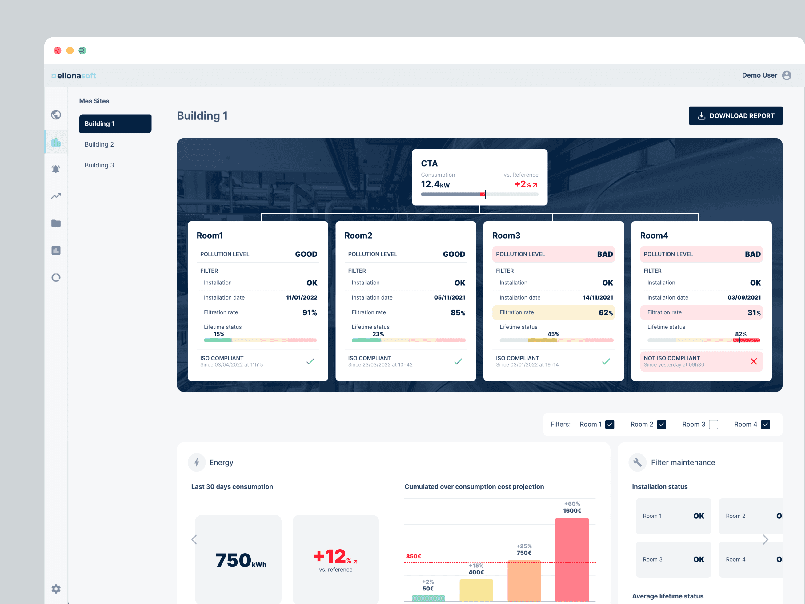 Redesigning a web application for real-time environmental monitoring dedicated to indoor spaces.